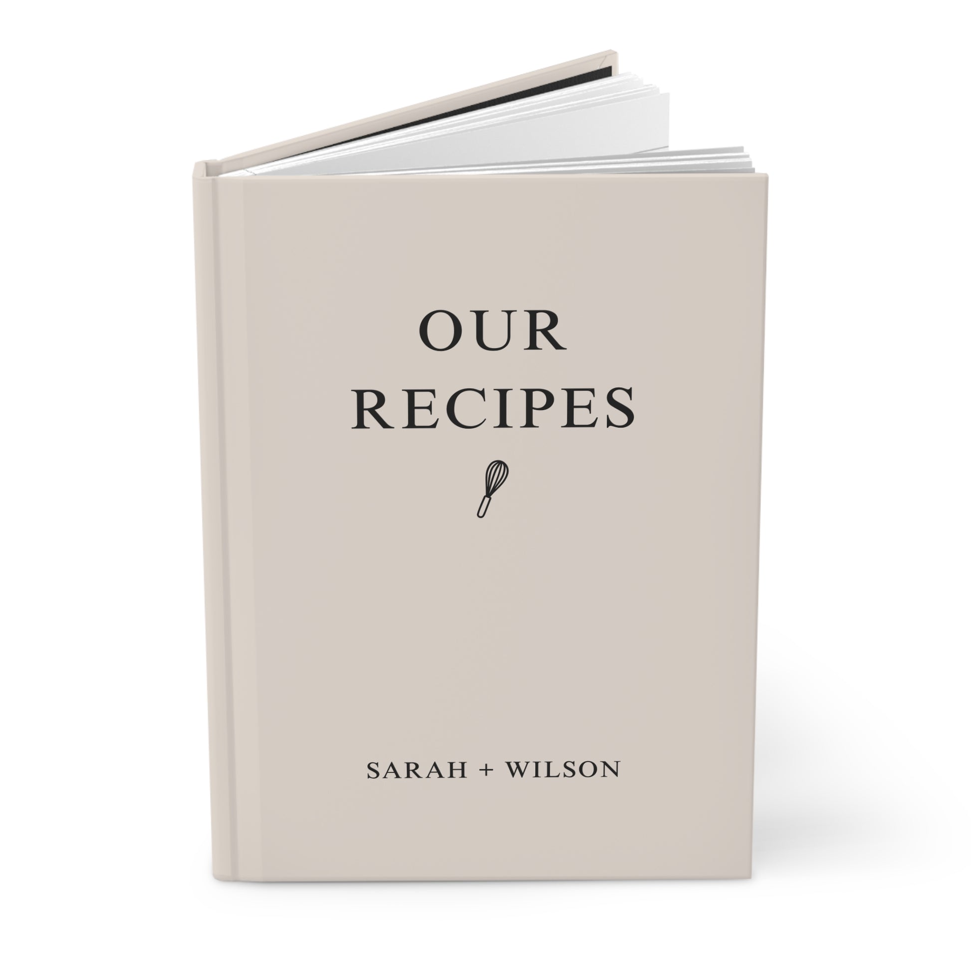 Create a lasting keepsake filled with love, memories, and favorite meals. Our Recipes is a beautifully designed personalized recipe journal, perfect for couples, families, or anyone who cherishes cooking together. Use it to record treasured family recipes, new culinary creations, and notes passed down through generations. With its timeless, minimalist design, this journal makes a meaningful wedding, anniversary, housewarming, or holiday gift- one that grows more special with every page filled.