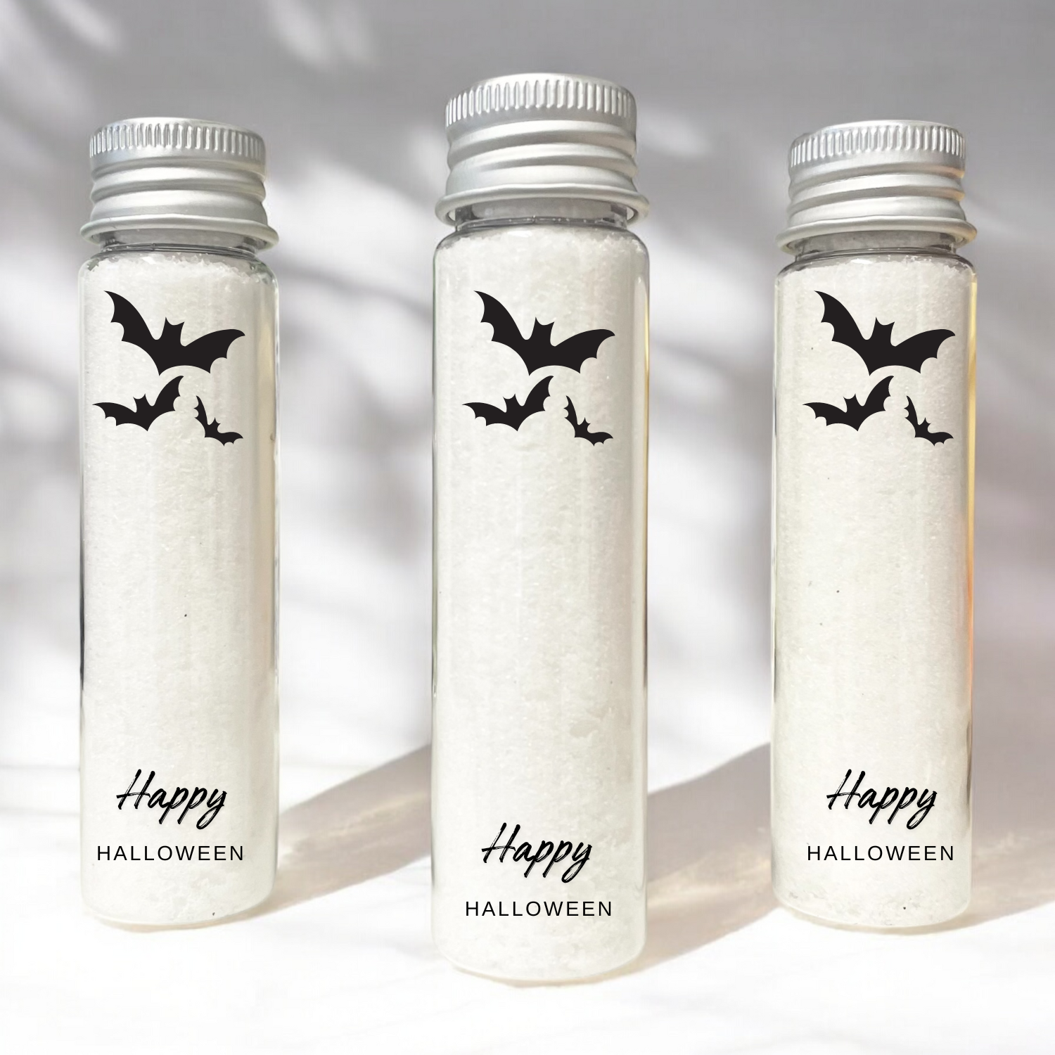 Transform your bath or shower into a luxurious experience with our Halloween bats Halloween bath salt favors. Made from all-natural Dead Sea Salts, our bath salts are available in numerous scents and are perfect for those that want an all- natural, dye-free bath salt.