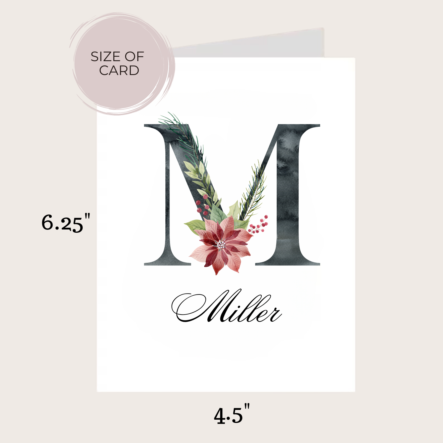 Send warm holiday wishes with our personalized holiday poinsettia card. Featuring a beautiful poinsettia design customized with your initial and last name, it's the perfect way to spread joy in person or by mail. Give it alone or pair it with a gift for an extra special touch.