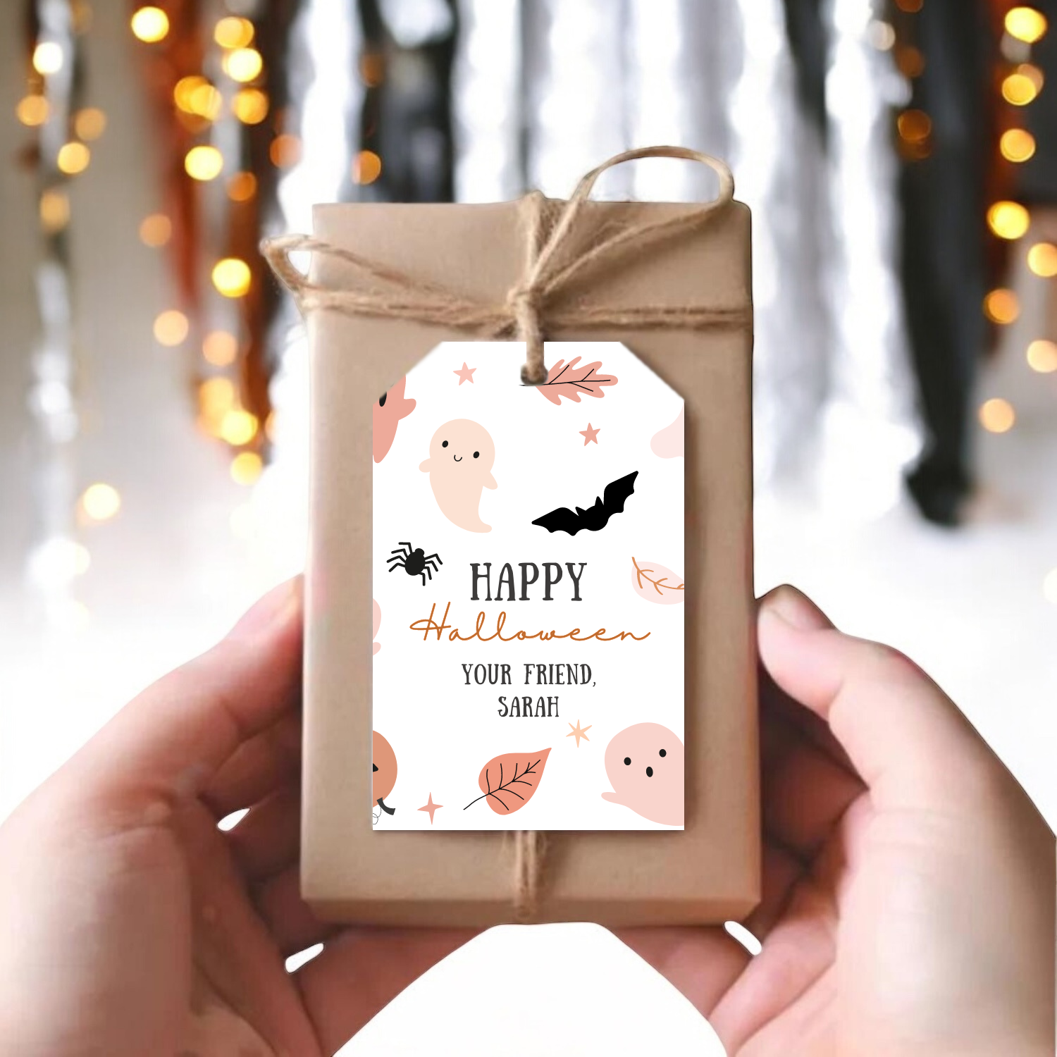 Celebrate Halloween with our personalized Happy Halloween favor tags. Perfect to add to gift boxes, gift bags or gift baskets, our fun and festive pink ghost, bats and fall leaves design with the sentiment Happy Halloween and a personalized name makes for a charming addition to any Halloween event. Use as Halloween favor tags for trick or treaters or add to Halloween favors for students to give to their friends at school.
