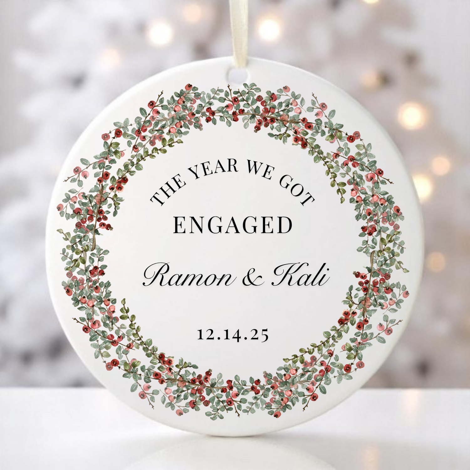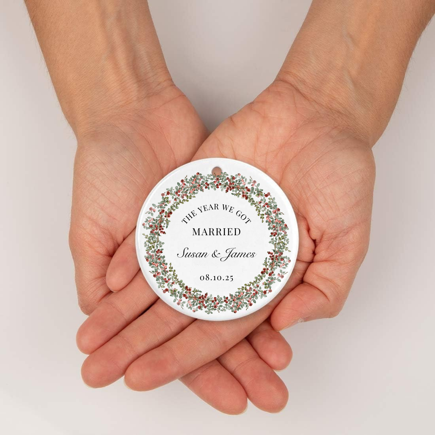 Celebrate your love story with our "the year we got married" ornament. Featuring a charming wreath encircling the couple’s names and special date, this keepsake adds a playful touch to your holiday décor. Perfect for newly engaged or newly married couples, it’s a delightful way to remember the start of your forever.