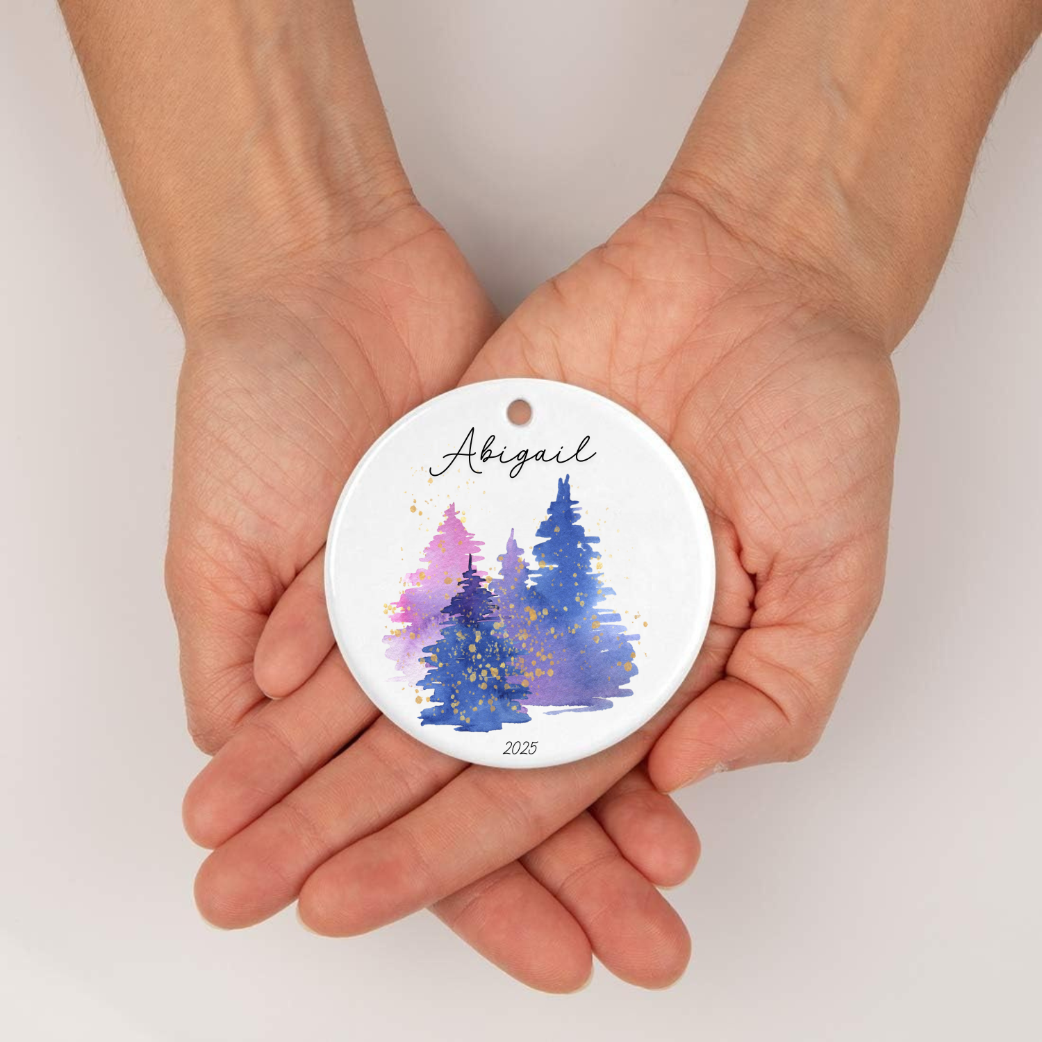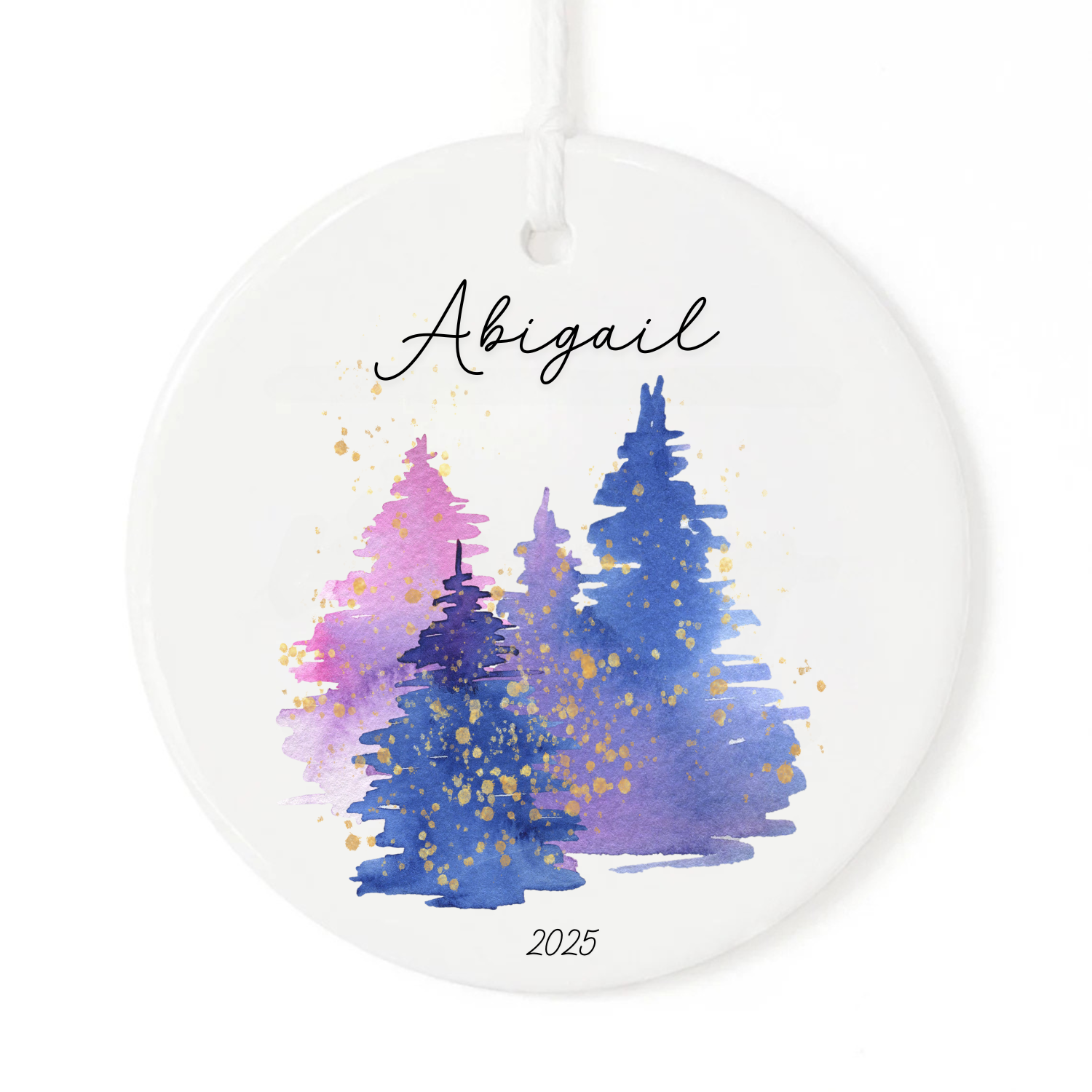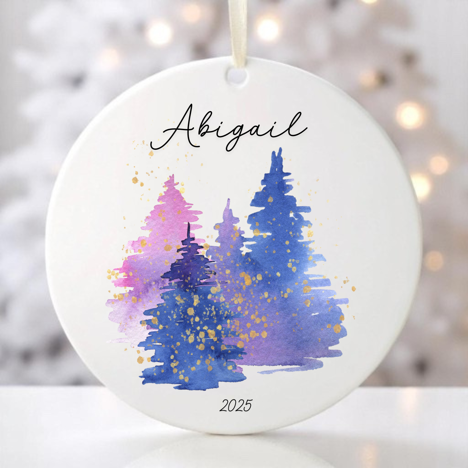 Add a splash of vibrant color to your holiday decor with our personalized watercolor tree ornament! This eye-catching keepsake features a festive purple, blue, and pink watercolor Christmas tree design that stands out from traditional ornaments. Personalized with your chosen name and date, it's the perfect playful gift to commemorate special moments while adding artistic flair to any tree. Each ornament is uniquely customized, making it a one-of-a-kind treasure that will bring smiles for years to come!